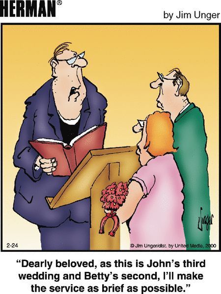 The pastor’s ready to wrap this wedding up faster than a drive-thru. Serial marriages never looked so amusing.