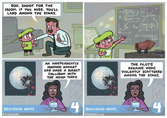 A classic inspirational quote goes spectacularly wrong. This comic hilariously demolishes parental clichés with literal, tragic consequences—and yes, it’s absolutely brilliant.
