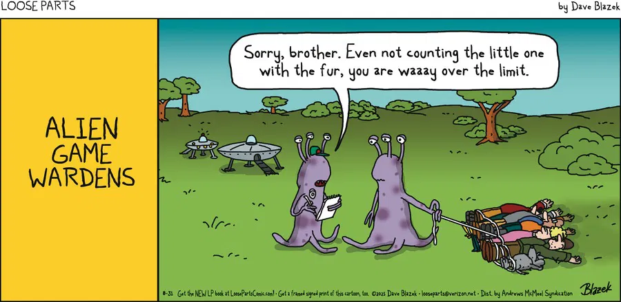 Credit: All comics are the work of Dave Blazek, syndicated by Andrews McMeel Syndication. You can explore more of his work at GoComics Loose Parts or his official site LoosePartsComic.com.