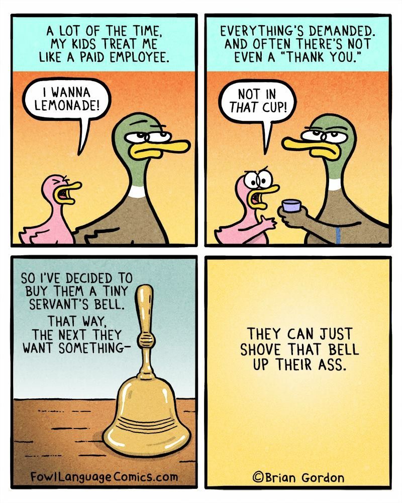 Next time your kids treat you like a waiter, just hand them a bell… and imagine exactly where you’d like them to put it. Sassy, sharp, and totally deserved.