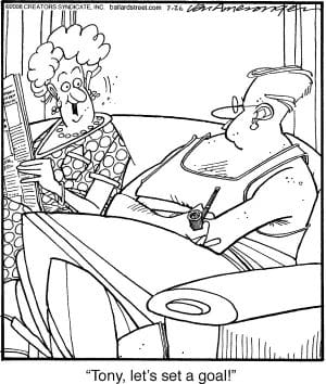 “Set a goal!” she says, while Tony lounges with a cigar. Spoiler: Tony isn’t moving an inch.