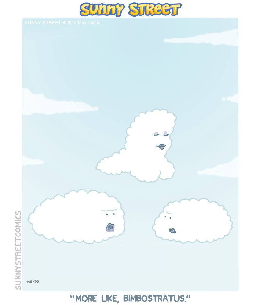 Garcia flips the weather forecast into a soap opera of cloud drama, complete with puns that are truly on another level. The comic’s gentle jab at cloud “types” is a breezy, clever take on NEW Comic humor.