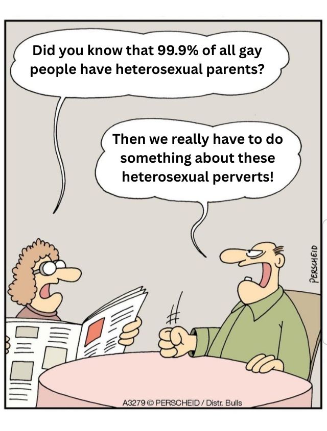 Twisting a classic statistic, this panel lampoons the never-ending debate about nature vs. nurture—with a dark, clever jab at parental “perversion.” It’s one of those comics you have to re-read just to appreciate the subversive wordplay.