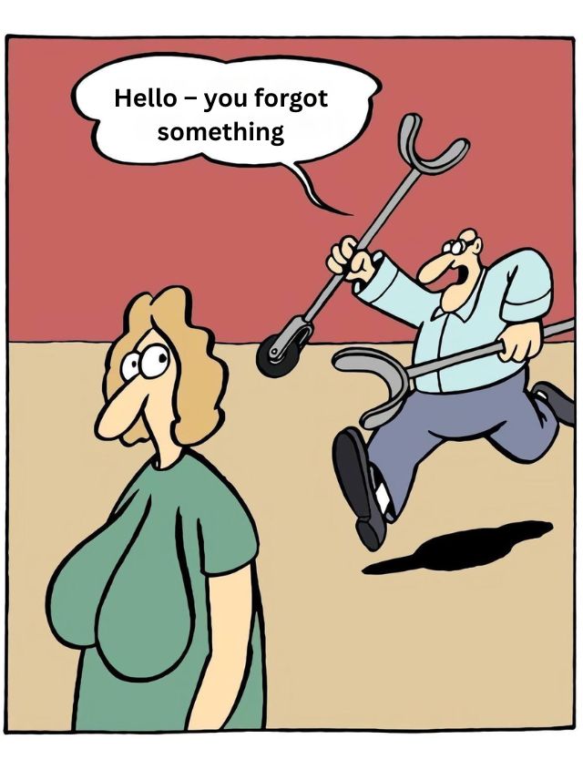 Visual gags don’t get much better than this: a man frantically returning forgotten prosthetic legs. It’s slapstick with a sinister edge—and a side of awkward social interaction.