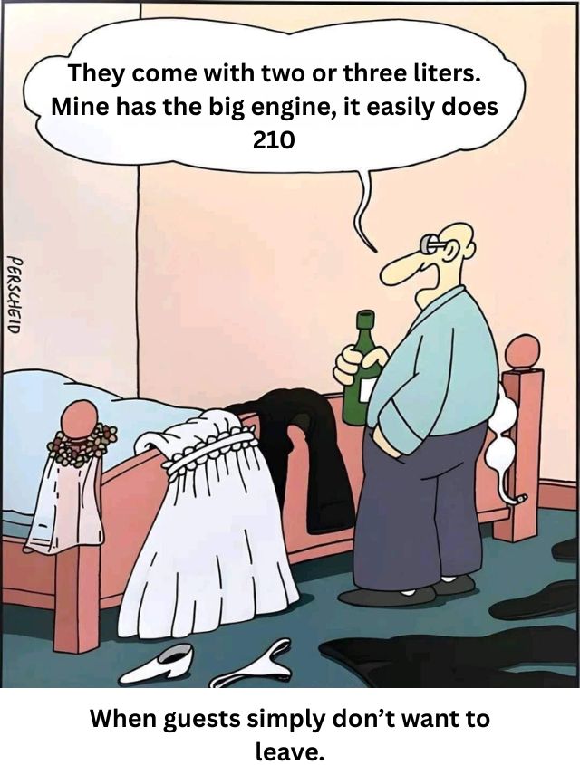 Who knew guests overstaying their welcome could turn into a gag about engines, liters, and speed? The mess left behind after a party gets a hilarious double meaning. Pro tip: never let Perscheid explain how his houseguests “run.”