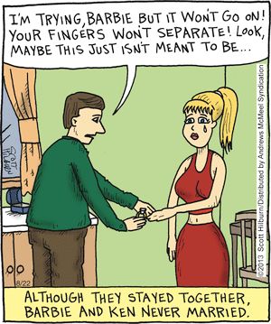 Ken tries to propose but can’t get the ring on Barbie’s molded hand. Their breakup? Pure plastic tragedy. A brutally funny take on unrealistic relationship standards.