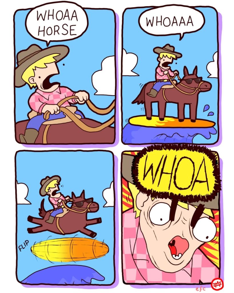 A cowboy’s ordinary day takes a wild turn, ending with a faceplant for the ages. Sometimes life really does flip you upside down.