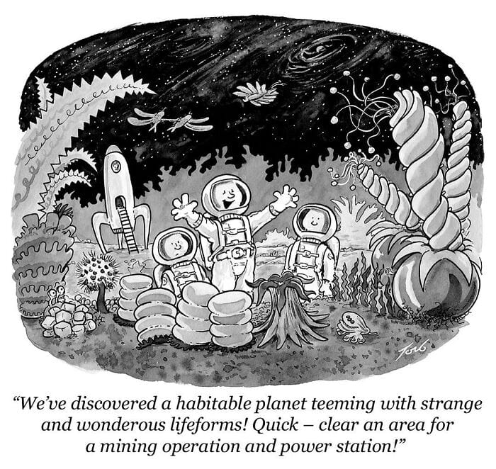 Humans ruin everything — even newly discovered alien ecosystems. This comic delivers sci-fi sarcasm with botanical flair.