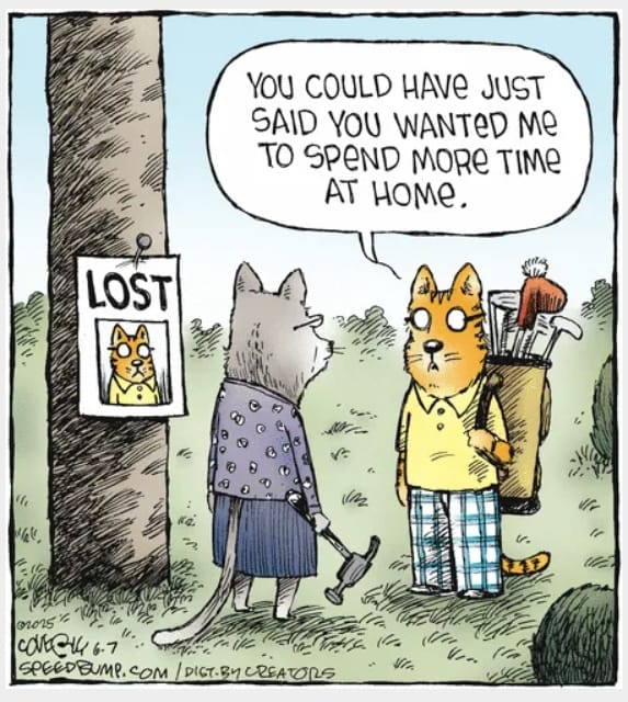 A “lost” cat poster was actually just a manipulative way to keep the husband home. Feline drama meets marital mind games in this subtly savage comic.