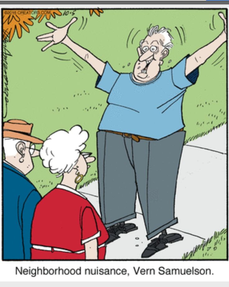 With arms flailing and trousers in protest, Vern has clearly earned his title. A masterclass in comic character creation with just one frame.