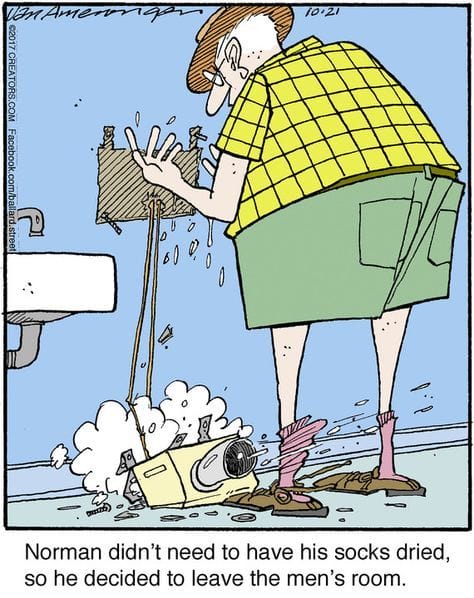 One look at that steaming, sparking dryer and you know: Norman made the right call. This is peak visual storytelling.