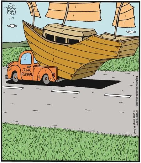 When Noah’s Ark needs to be hauled away, who do you call? Junk Removal, of course! One of the best new humor cartoons for anyone who loves visual gags.