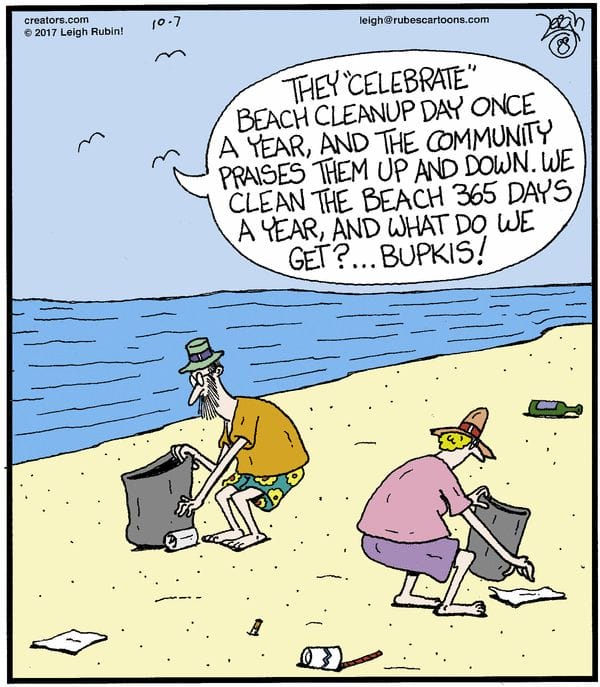 365 days a year, they clean the beach—once a year, someone else gets the glory. Sometimes, the real punchline is society’s sense of gratitude.