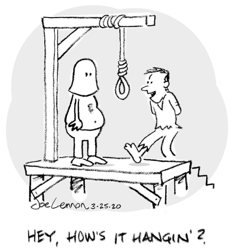 A classic gallows humor setup—literally. This dark little quip walks a thin line but lands with unexpected charm. It’s morbid. It’s cheeky. It’s peak Lennon.