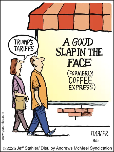 Jeff Stahler is an award-winning American cartoonist known for his witty single-panel comics that appear in newspapers and syndication across the country. His work often highlights the absurdities of daily life—from family quirks to cultural trends—delivered with sharp humor and clean illustration. Over the years, Stahler’s comics have been featured in USA Today, GoComics, and countless local papers. He’s earned recognition for balancing satire with relatability, making his cartoons perfect snapshots of modern living. His signature style blends expressive characters with quick punchlines, ensuring each panel leaves you smiling—or nodding in agreement.