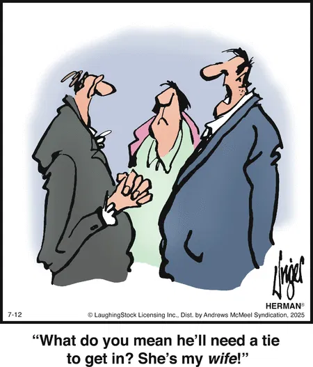 Club entry rules can be weird, but Herman’s take on “tie required” hits another level—especially when it’s your wife running the show.