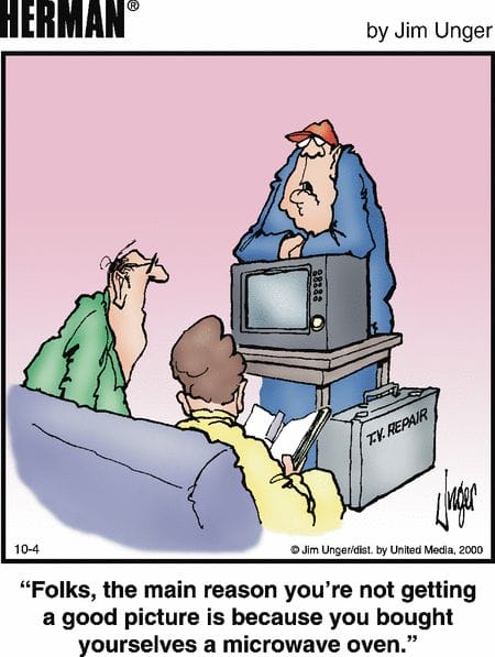 Wondering why your new TV’s not working? Check if it’s actually a microwave! Classic Herman confusion at its best.