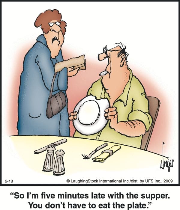 Five minutes late and suddenly the plate’s fair game? Only in a “Herman” comic does dinner go sideways this fast.