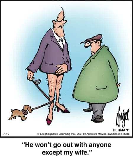 The most loyal dog around? Or just a canine with standards. “Except my wife” is the kind of punchline that keeps “Herman” trending decade after decade.