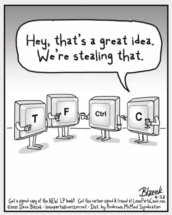 Copy-paste gets literal when keys like Ctrl and C scheme to “steal” an idea. Keyboard comedy at its absolute finest.