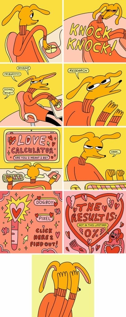 It’s a lot of thinking and feeling things out deciding what to share and what to keep to myself and figuring out how to adjust the piece so it works visually, especially when there’s text involved. After that, I sketch it out and spend hours working on my iPad.