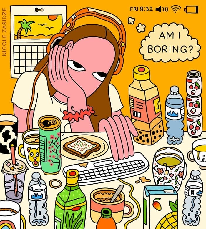Some of her most notable works include critiques of self-care culture and her comic Until Then, Take Care, both of which feature powerful narratives paired with bold visuals. Fans of her work appreciate the emotional depth and humor she brings to even the toughest subjects. Discover Nicole Zaridze’s unique illustrations and check out our full interview below.
