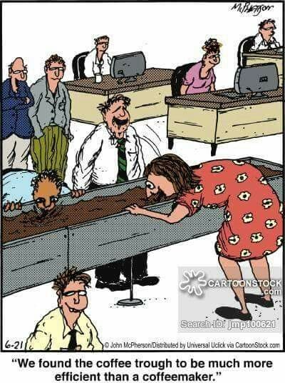 Why bother with a Keurig when you can have a communal coffee trough? Gross? Absolutely. Efficient? According to the office zombies slurping it—yes.