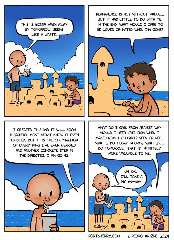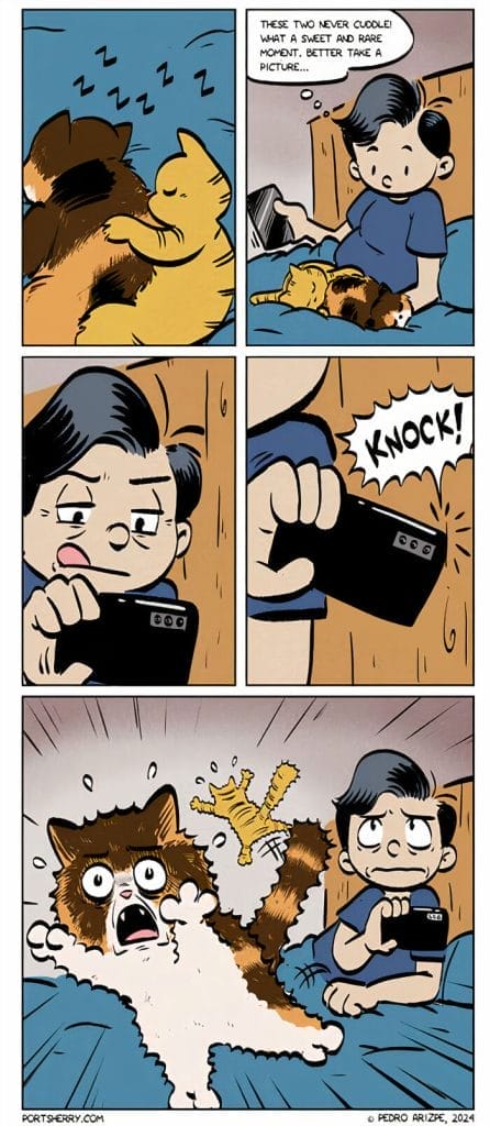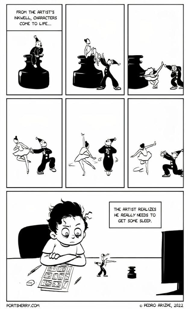 Port Sherry is a webcomic by Pedro Arizpe renowned for its witty often surreal humor. The comic covers everything from the quirky everyday moments of life to bizarre and thought-provoking scenarios. Pedro began sharing Port Sherry in 2010 and has since amassed a loyal following online, with over 90,000 Instagram followers. Pedro’s influences come from iconic cartoonists like Walt Kelly Ernie Bushmiller and Bill Watterson which are reflected in his clean expressive artwork visual humor and dynamic storytelling. Each strip offers something to laugh at while encouraging readers to pause and reflect inviting them to view the world from a fresh perspective. Take a scroll down for a mix of humor and insight and enjoy the quirky side of life.