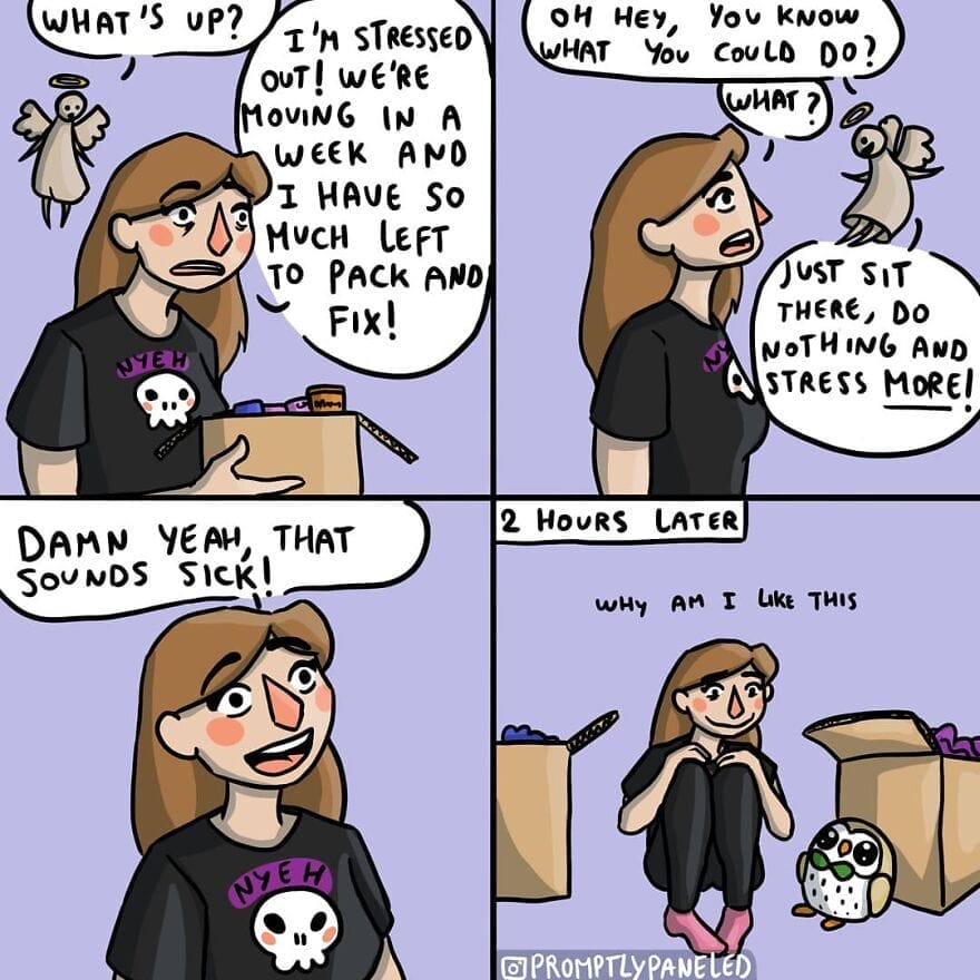 Promptly Paneled is a series of relatable webcomics created by Xan Degu, also known as Xan. The comics focus on everyday life problems and experiences, particularly those faced by women. Xan’s comics are often described as feminist and relatable, resonating with many readers. The Promptly Paneled series includes four-panel webcomics that humorously depict various situations and challenges that people encounter in their daily lives. Xan’s comics cover a wide range of topics.