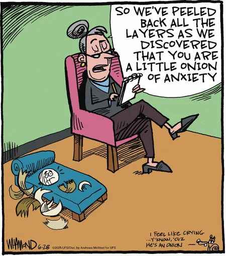 Peeling back layers in therapy reveals an actual onion. If you don’t feel seen by this, congratulations, you are probably not an overthinker.