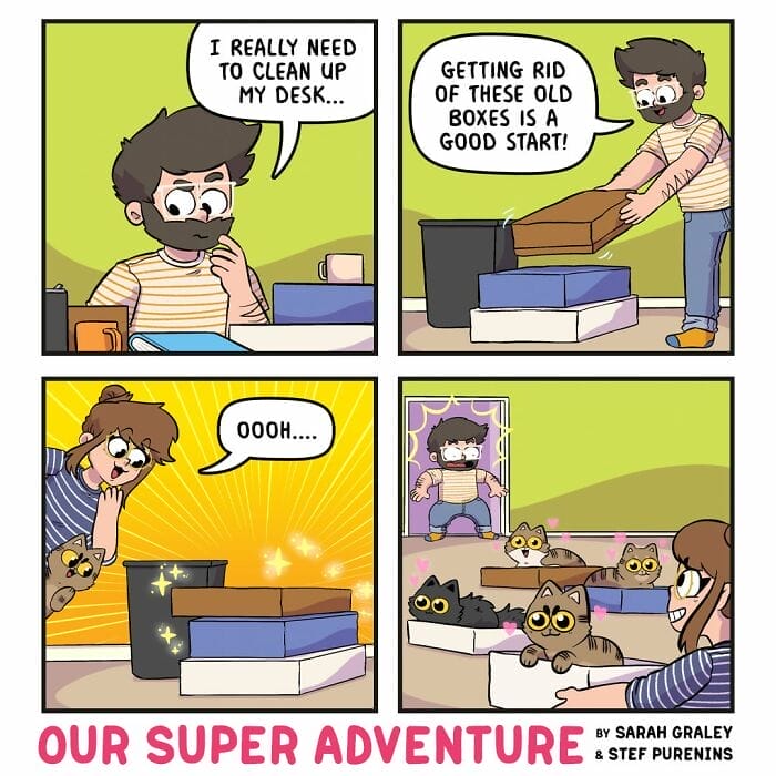 Sarah Graley created Our Super Adventure to capture the sweet, lighthearted moments from her relationship with Stef, and it has deeply connected with readers. She frequently hears from fans at comic conventions and online who share how much they relate to the fun, nerdy interactions she depicts. There are so many playful, nerdy relationships out there and it’s nice to know there’s a whole community of people who, like me, are in relationships with their best friend and enjoy a quirky sense of humor together Sarah shared. Her comics have become a celebration of these joyful everyday moments resonating with anyone who enjoys seeing the humor and warmth in their own companionships.