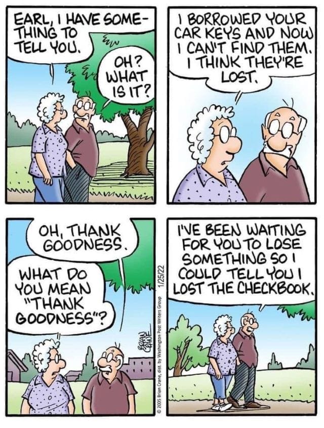 Losing the car keys suddenly feels better when you realize you also lost the checkbook.