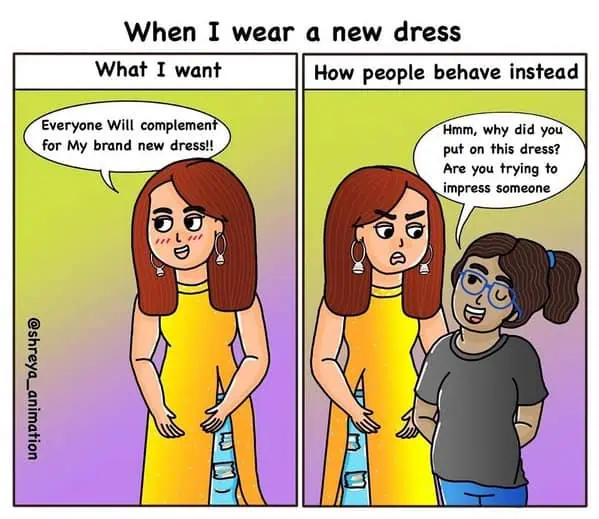 Despite her success, Shreya admits that she has had many failures along the way. However, each failed attempt has led to success, and she has continued to grow and evolve as an artist. Her journey is a testament to the power of perseverance and hard work. Shreya’s artwork is a blend of traditional and digital techniques, and her illustrations are characterized by their vibrant colors, intricate details, and whimsical style. From the everyday struggles to the extraordinary achievements, these stories reflect the myriad identities, passions, and dreams that girls embody. Whether it’s navigating relationships, pursuing their ambitions, or overcoming societal expectations, these comics provide a mirror that validates and celebrates the shared experiences of girls everywhere. Let’s take a look at some of her recent illustrations.