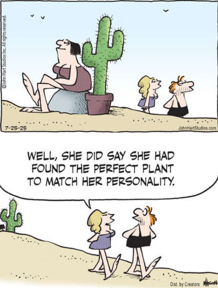 Ever meet someone whose personality is…a bit sharp? In BC, the search for the “perfect plant” ends with a cactus—spiky, resilient, and hard to ignore. This is stone age humor that proves some things (and some people) never change, no matter what era you’re living in.