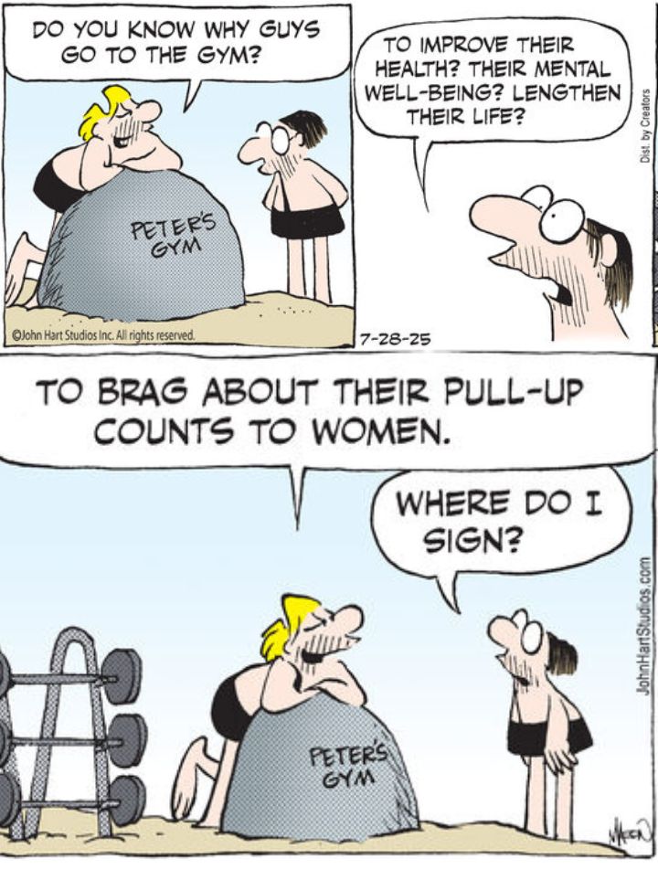 Forget self-improvement—real stone age guys hit the gym to impress the ladies with their pull-up count! This comic skewers gym culture, showing that some motivations (and insecurities) have been around since the dawn of time. Where do we sign up for Peter’s Gym?