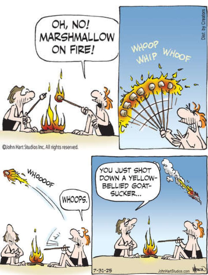 S’mores, meet stone age humor. When a marshmallow goes up in flames, the BC gang doesn’t panic—they accidentally shoot it down like a prehistoric missile, right into a yellow-bellied goat-sucker. Is it culinary genius or just another reason to stick to cave-baked bread? You decide.
