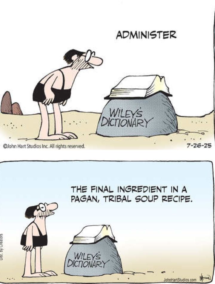 BC’s dictionary bits never disappoint. The word “administer” gets a pagan twist, reimagined as the last ingredient in a tribal soup recipe. It’s dark, it’s punny, and it’s classic stone age humor—nobody’s safe from a double entendre.