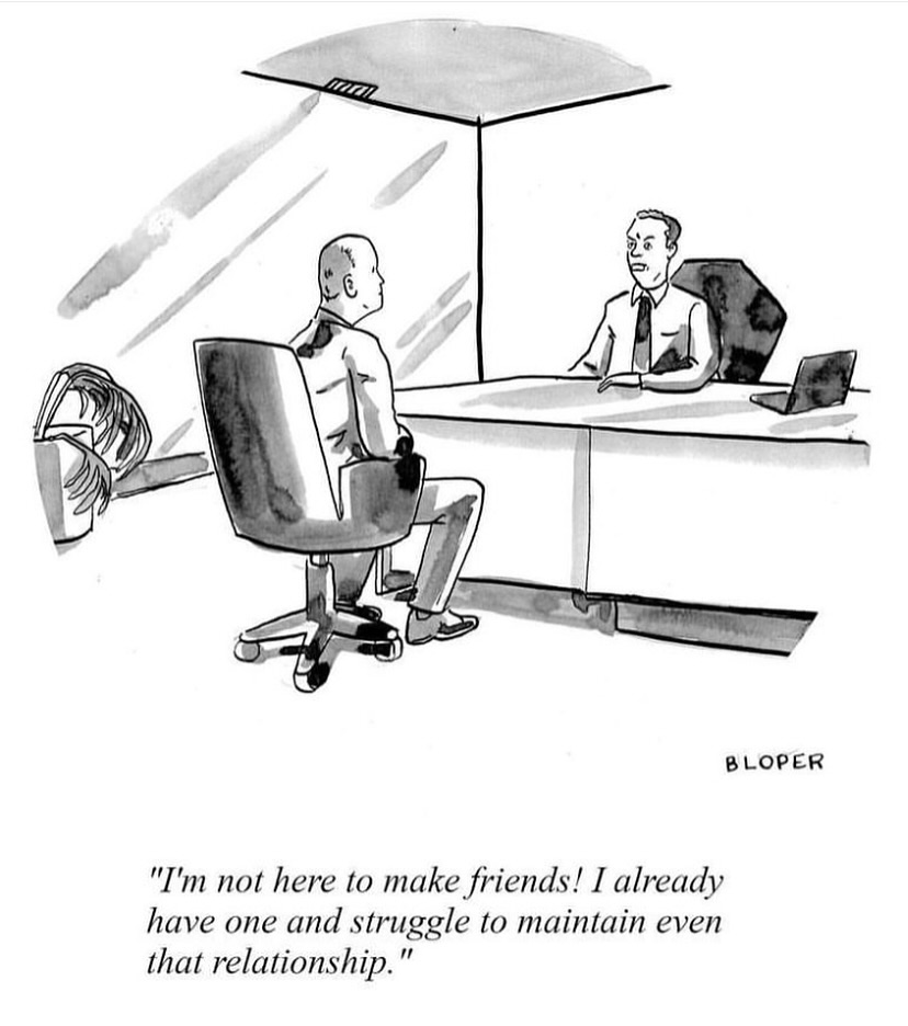 The introvert’s job interview anthem. Loper’s best comics are savage and accurate.