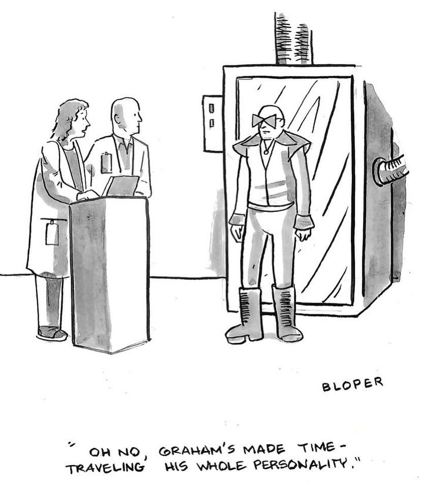 Some people get a new haircut, others get stuck in the time-space continuum. Loper’s best comics make even nerdy jokes feel cool.