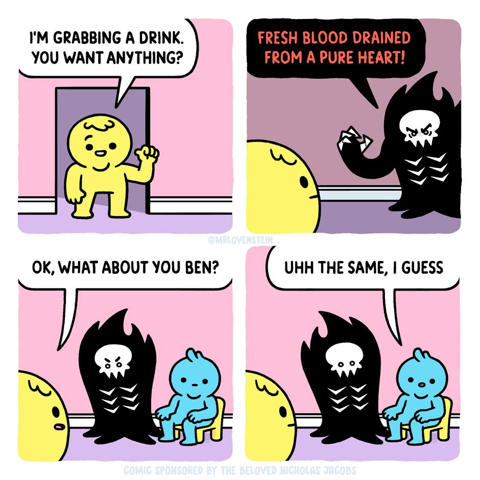 Ordering a drink is stressful enough. Ordering from a demon? This comic takes “I’ll have what he’s having” to disturbingly funny levels.
