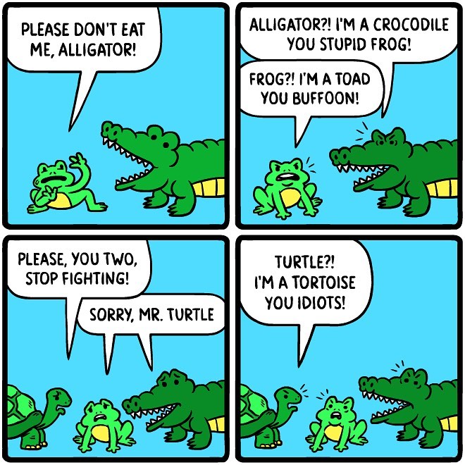 Frog, toad, turtle, tortoise—does anyone really know who they are? This comic’s identity confusion is as real as it is hilarious.