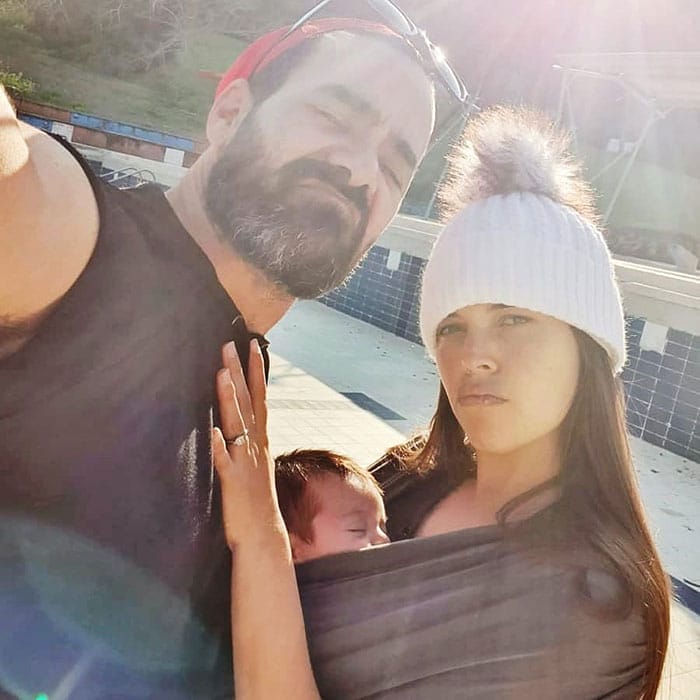 Here are a couple of photos showing the couple with their son, Ethan, after he was born.