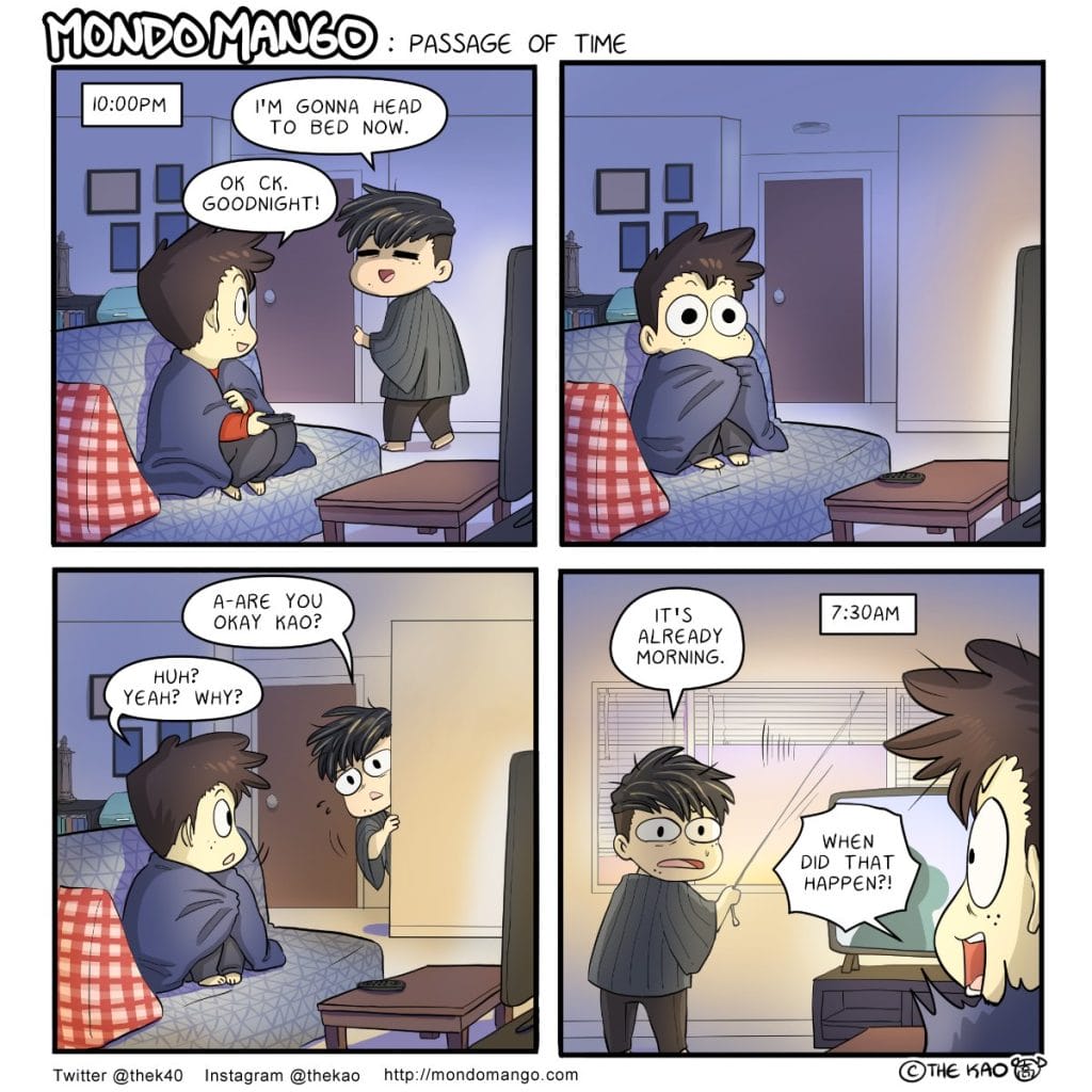 Artist Kao has a remarkable talent for capturing the adventures of his life through the lens of amusing comics. Through his unique artistic style and relatable storytelling, Kao brings to life the humor and charm of ordinary situations, making even the most mundane tasks a source of laughter and joy for his readers. Whether it’s a hilarious mishap during a morning commute, a comical encounter with a mischievous pet, or the amusing misunderstandings that arise in everyday conversations, Kao’s comics beautifully portray the humor inherent in the adventures of everyday life. If you’re looking for a funny, heartwarming, and visually stunning webcomic, then I highly recommend checking out his recent 20 illustrations in the next section.