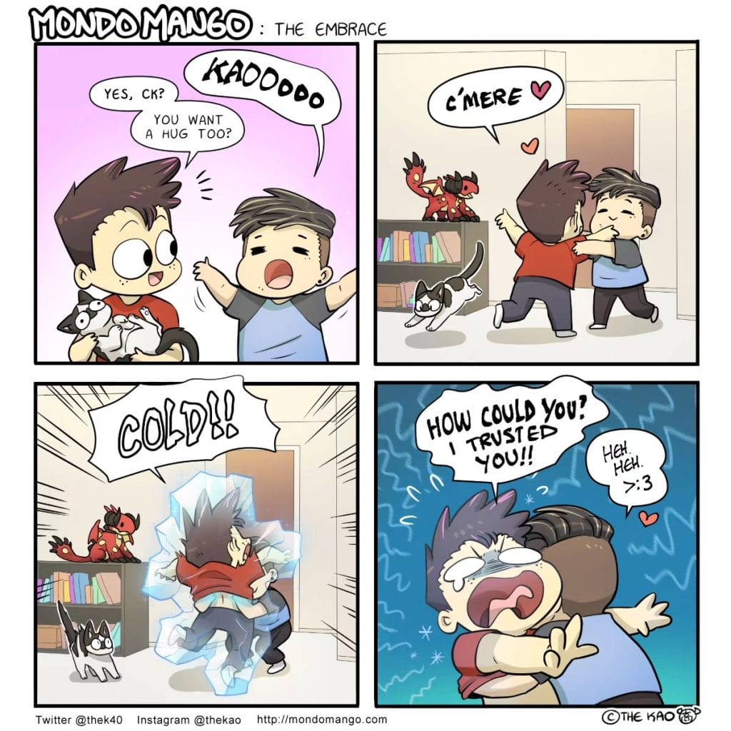 Artist Kao has a remarkable talent for capturing the adventures of his life through the lens of amusing comics. Through his unique artistic style and relatable storytelling, Kao brings to life the humor and charm of ordinary situations, making even the most mundane tasks a source of laughter and joy for his readers. Whether it’s a hilarious mishap during a morning commute, a comical encounter with a mischievous pet, or the amusing misunderstandings that arise in everyday conversations, Kao’s comics beautifully portray the humor inherent in the adventures of everyday life. If you’re looking for a funny, heartwarming, and visually stunning webcomic, then I highly recommend checking out his recent 20 illustrations in the next section.