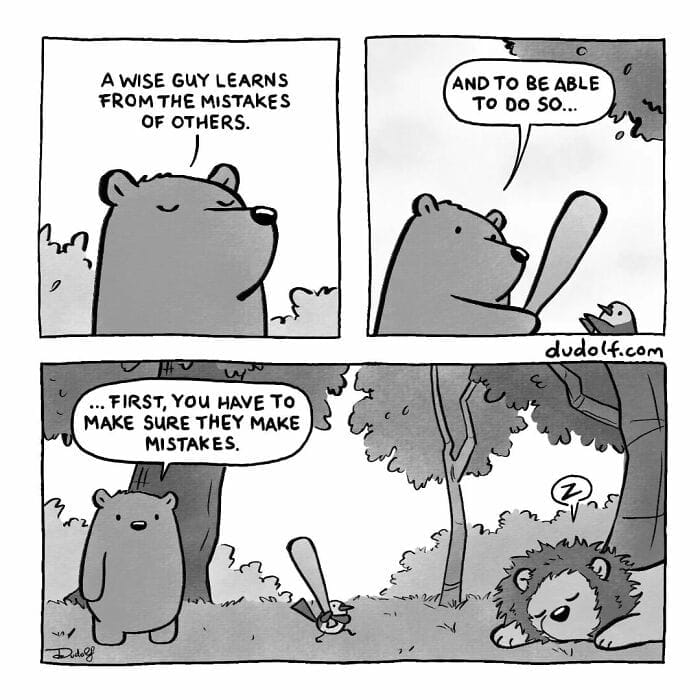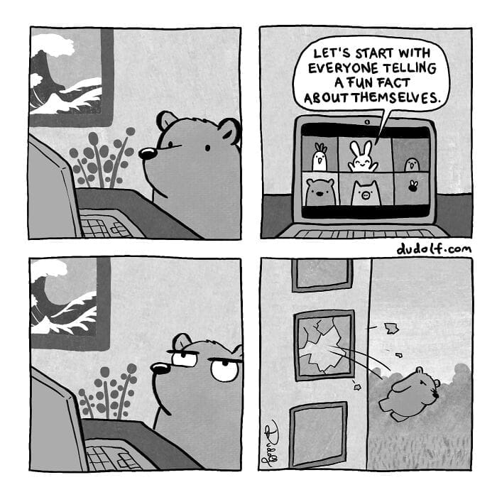 Gergely Dudás, the talented illustrator behind the popular comic series Dudolf opened up about the elements he believes make his work so humorous and relatable. According to the artist Relatable and self-aware comics are always very funny. I enjoy turning small daily struggles into comics. I hope they make it a little bit easier for others to deal with them. Seeing my most common character the Bear in a relatable situation can help people feel like they’re not alone in their own experiences.