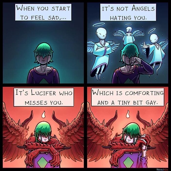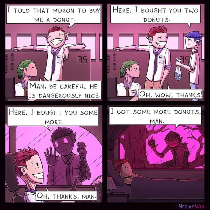 The main theme of this artist’s comics is slightly dark but colourful. He tries to make funny comics with unexpected twists. He also adds darkish touch to his comics. We can see the beautiful colour combinations in his comics. If you are a fan of dark humour comics then scroll down to enjoy the collection of comics in the section below.