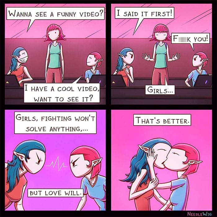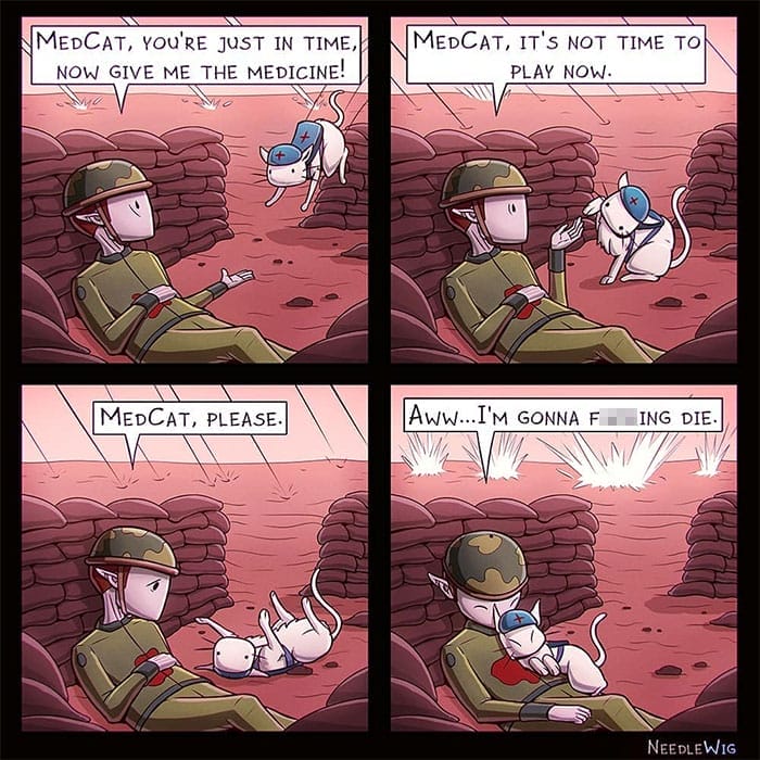 “Needle.Wig” is an Instagram account created by an artist or illustrator named “Deividas Tamosiunas”. He lives in Denmark. The artist is an expert in drawing arts and comics. He makes dark comic strips which are always enjoyable for his fans. He earned 15.2k followers on his Instagram account by creating such content.