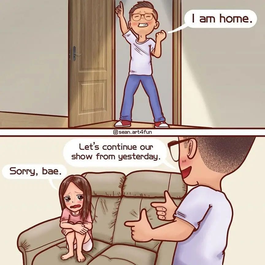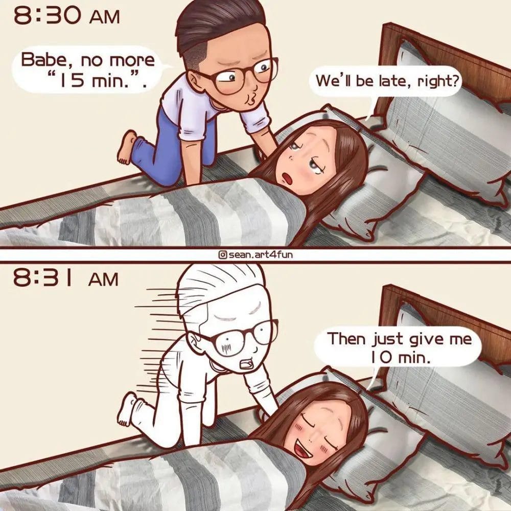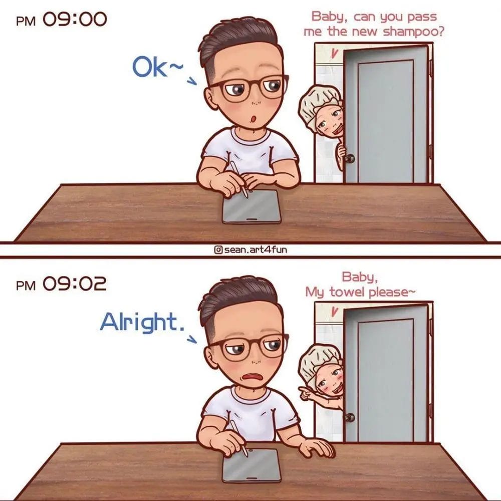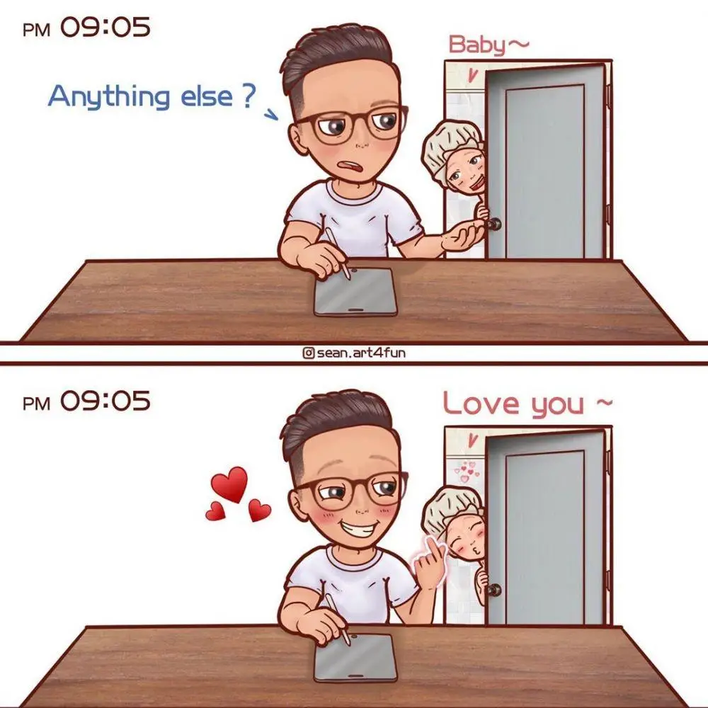 The artist “Sean” that makes comics on silly circumstances that couples faced on a daily basis. The artist created comics at a young age. Sean frequently created comics about couples who do silly things with each other. The artist has gained 167k followers on Instagram by consistently producing high-quality content. This artist claims that he likes animations and something related to that. These comics show all these enviable perks of being in a loving, committed relationship, which sure help in keeping the spark alive. It is actually the little, mundane things that a couple in a long-term relationship shares (on a daily basis, mind you) that fuel the relationship and make it enter the ‘for the long haul’ territory. This artist always amused his fans with his content. The gallery below features some of Sean’s humorous comics.