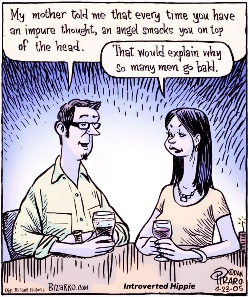 My mother told me that every time you have an impure thought, an angel smacks you on top of the head.