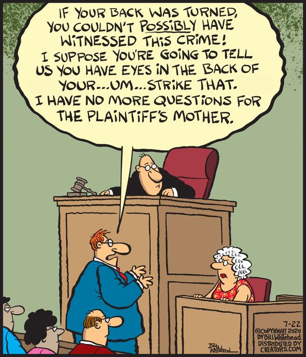 A lawyer’s cross-examination goes sideways when the witness is a classic “mom.” The ultimate parental superpower gets a courtroom twist.